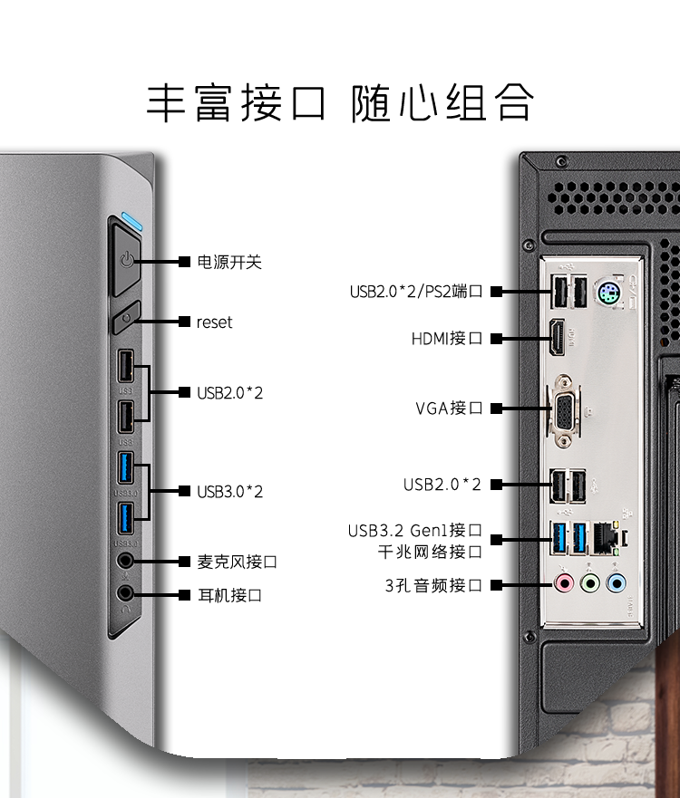 顶部接口排列式 2*USB 3.02*USB 2.02*Audio